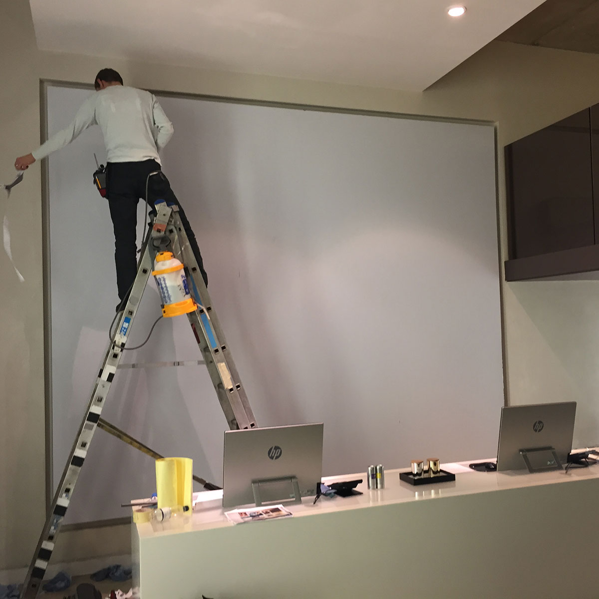 The varying displays include Lightbox systems, wall vinyl and internal window graphics. We also install large format and internal window vinyl, which requires working from various access equipment. These installs are carried out, out of hours to minimise disruption to the client and to the public.